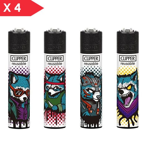 CLIPPER LARGE RACOONS, SONO ACCENDINI PIETRINA A MARCHIO CLIPPER DECORATE CON GRAFICHE COME IN FOTO.