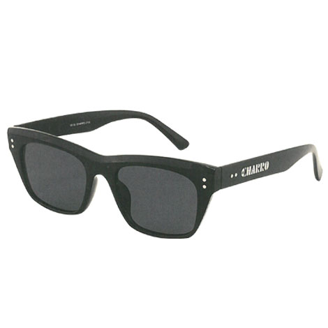 MONTATURA NERA SQUADRATA E LENTI COLOR GRIGIE.