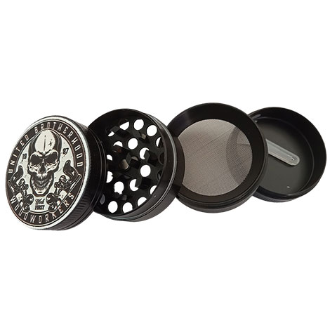 FARO GRINDER METAL BLACK SKULL 2 è UN GRINDER REALIZZATO IN METALLO SUDDIVISO IN BEN 4 PARTI.