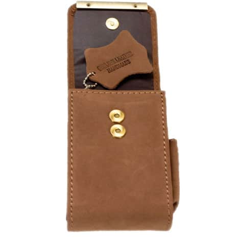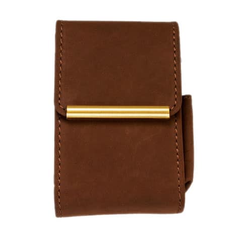 FARO PORTA PACCHETTO PELLE MARRONE LISCIA PICCOLO E COMPATO, CON PORTA ACCENDINO LATERALE.