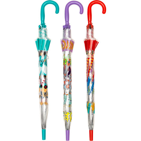 OMBRELLO BIMBO AUTOMATICO FANTASIA NYLON TRASPARENTE DISPONIBILI IN 6 COLORI E DECORI DIFFERENTI.